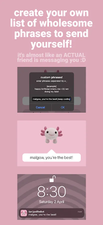 maybe you want to set up your own list of phrases to be notified of positive affirmations throughout your day.