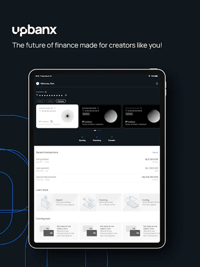 We are UpBanx, the next-generation financial technology platform for creators like you. Enjoy access to the new financial features and benefits.