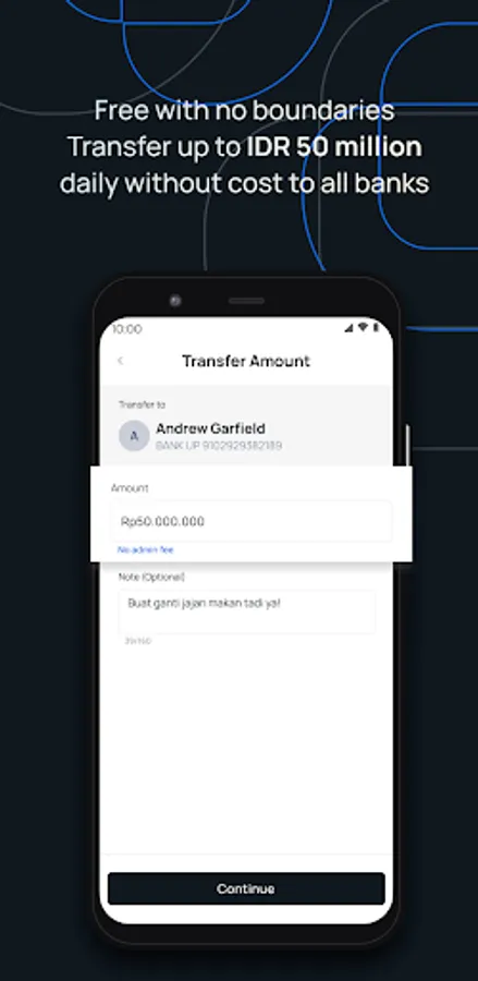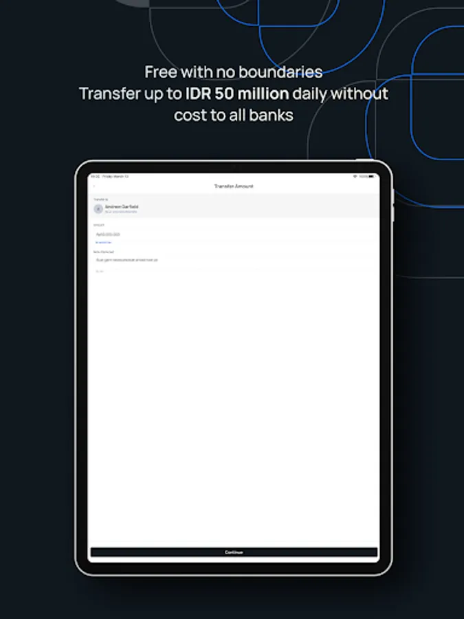 Tired of boundaries? Enjoy free transfers up to IDR 50 million daily without cost to all banks. Real-time, 24/7.
