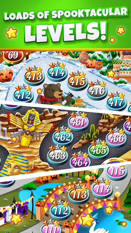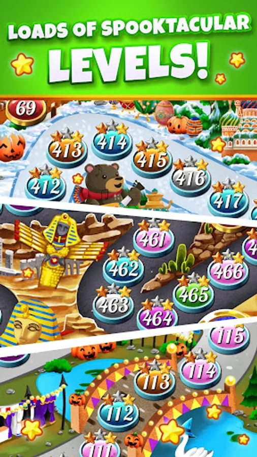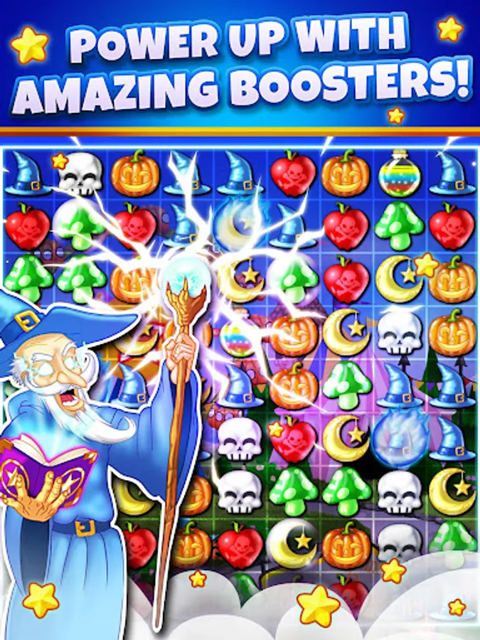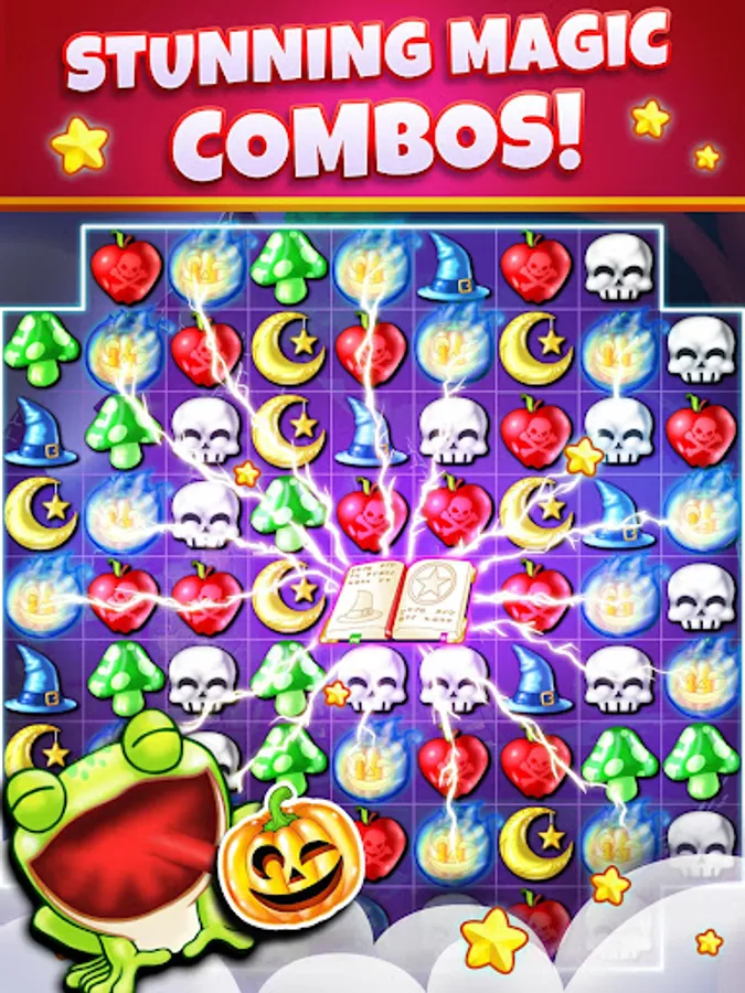 - Match enchanted items from Halloween such as skulls, pumpkins and poisoned apples to clear the board