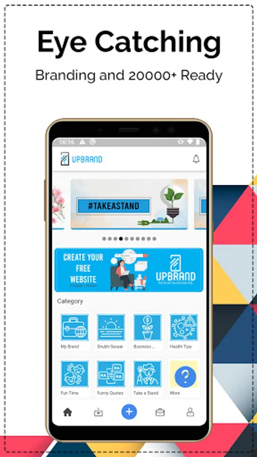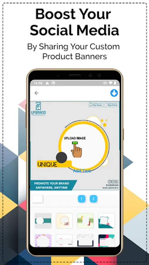 In 15 seconds your social media business post ready Step 1: Install UpBrand on your phone