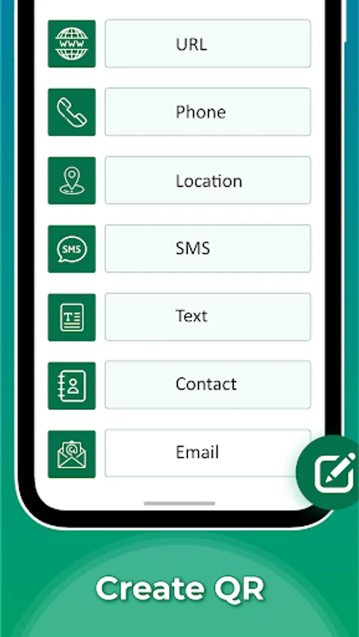 1. To create QR codes, open the Qr code maker - Qr code reader app and select "Create" from the bottom menu.