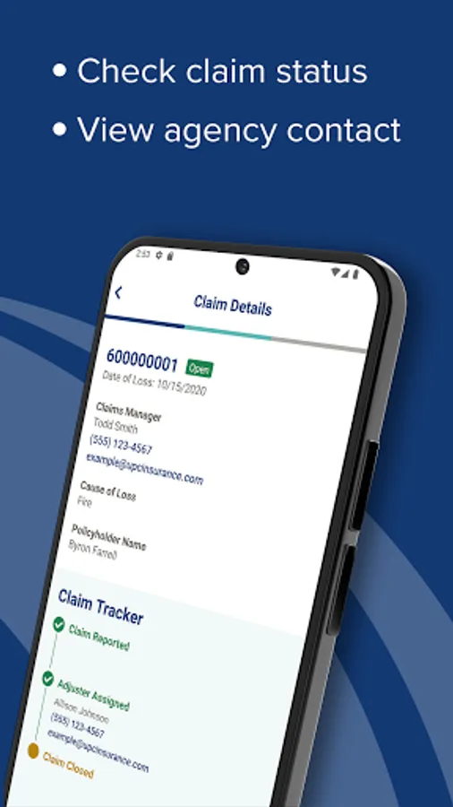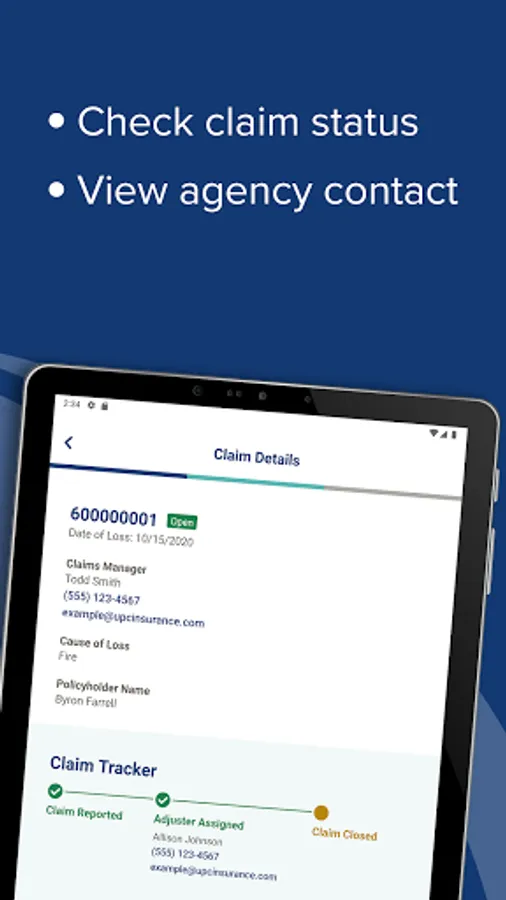 Submit a new claim or view the status of an existing claim. Policyholders with an existing claim will now have access to their assigned adjuster’s name, email, and phone, as well as their manager. You will be able to track the claim through completion.