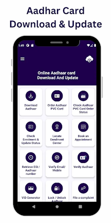 this aadhar card download & update app can check Aadhar card Update status, Book Appointment for correction in Aadhar Card Card & Download Aadhar card by using Aadhar card app.