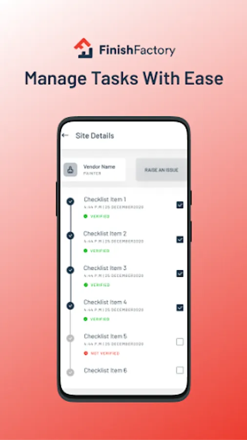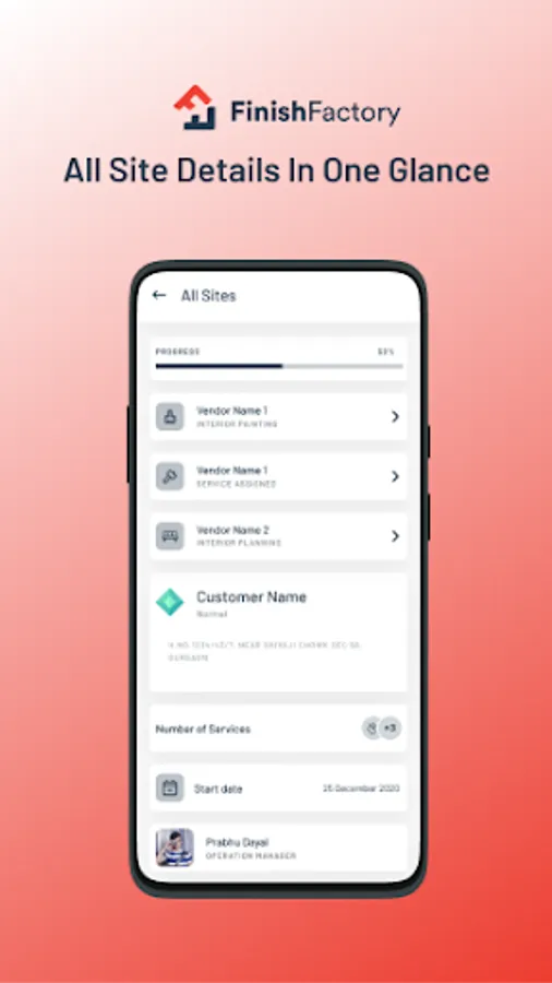 Manage Finish Factory sites with ease with the all new application for Site Managers, filled with features to make your work way easier.