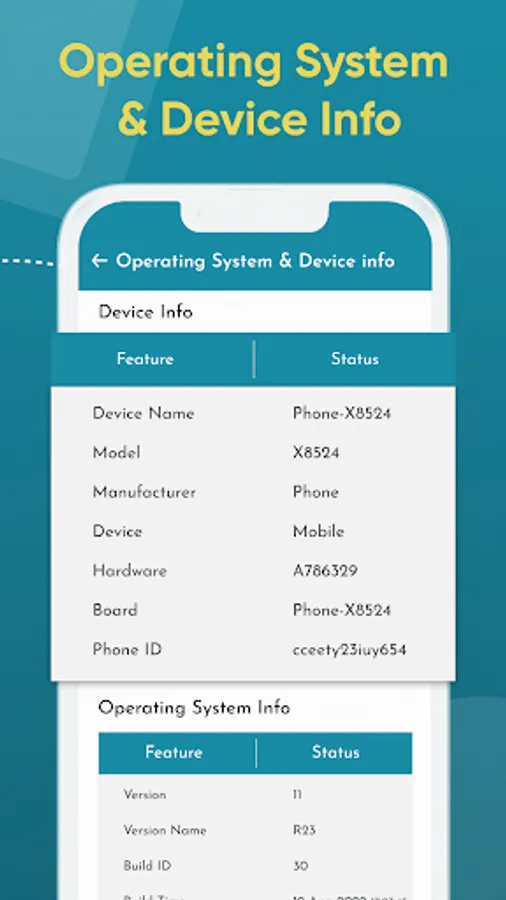 The device info feature of the up-date app allows the user to determine information regarding the device they are using, such as OS version, API level, device, model, product, version, etc.