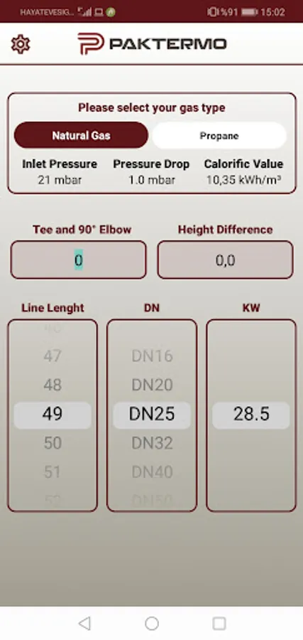 Yapmayı düşündüğünüz PAKTERMO tesisatı ile ilgili az sayıda bilgi girmenizi ister ve isabetli sonuçlar verir. Uygulamanın kullanımı oldukça kolaydır. Hattınızın uzunluğunu ve PAKTERMO hortumunuzun çapını girin, izin verilen maksimum cihaz kapasitesini KW cinsinden görün. İsterseniz propan için isterseniz de doğal gaz için hesaplama yapın.