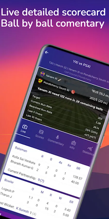- Separate tab to easily access all the Live Matches & Live Cricket scores