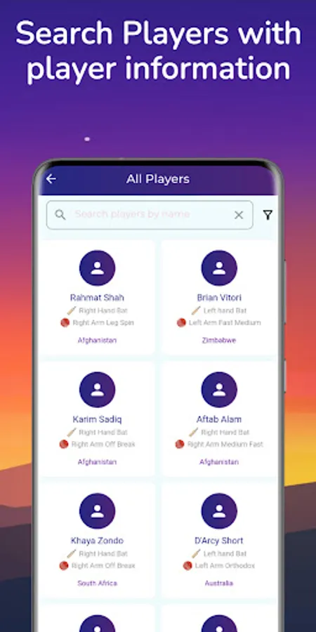 π Matches - Current matches, Scheduled matches, Completed Matches, and abandoned matches data can be shown in this tab.