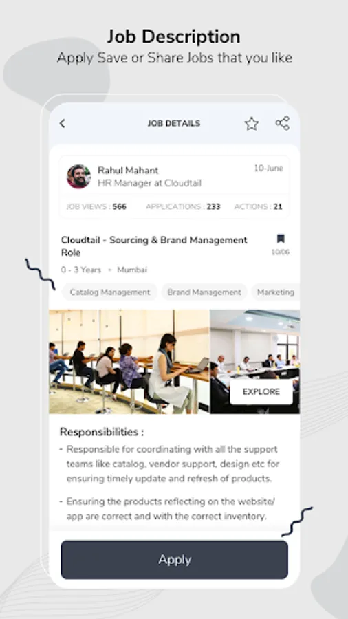 Through Updazz.com app you can seamlessly browse, save and apply for the sales & marketing jobs on the move.