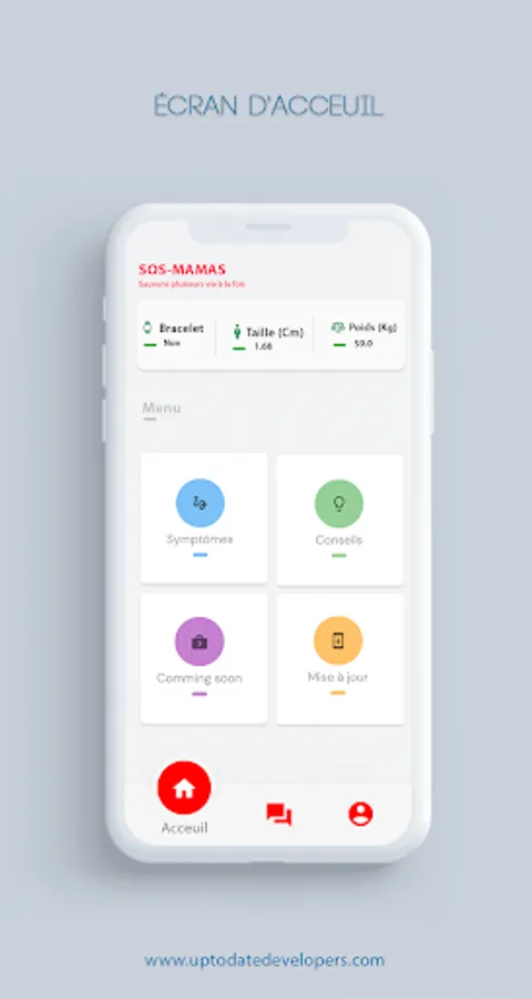SOS-MAMAS is a mobile platform connected to an electronic bracelet which monitors the various vital parameters to detect and alert any sign of danger in pregnant women.
