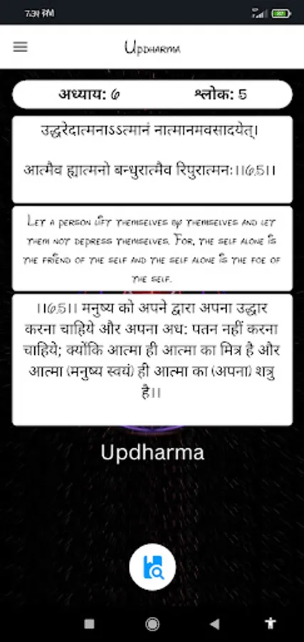Every day we should read more than 5 verses of Bhagavad Gita and get a lot of knowledge from Bhagavad Gita. Get rid of misery and life problems, use the Updharma app and learn more about your religious texts.