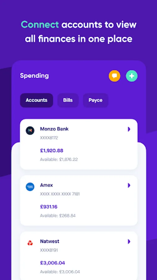 Connect your bank and credit card accounts to give yourself a 360 degree view of your bills and spending. Check all of your transactions and bills in one simple to use space.