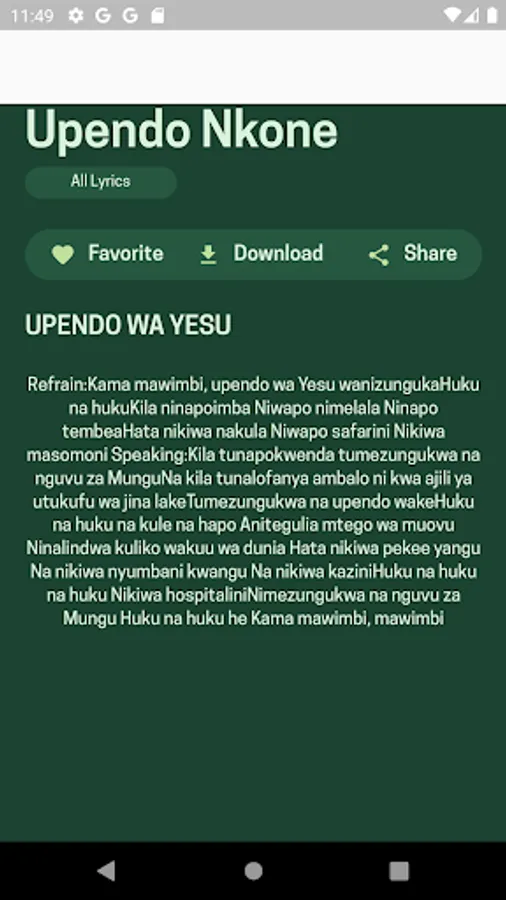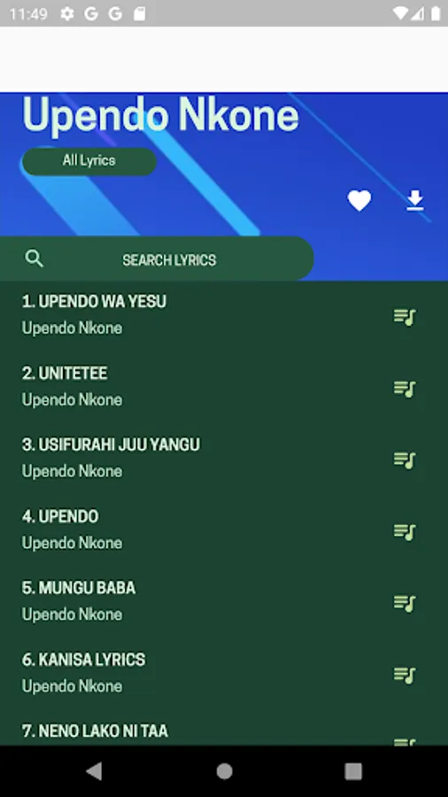 Upendo Nkone Songs lyrics makes it easier for users to sing by using the lyrics in it. Make sure the internet connection is on to use this application to read the lyrics