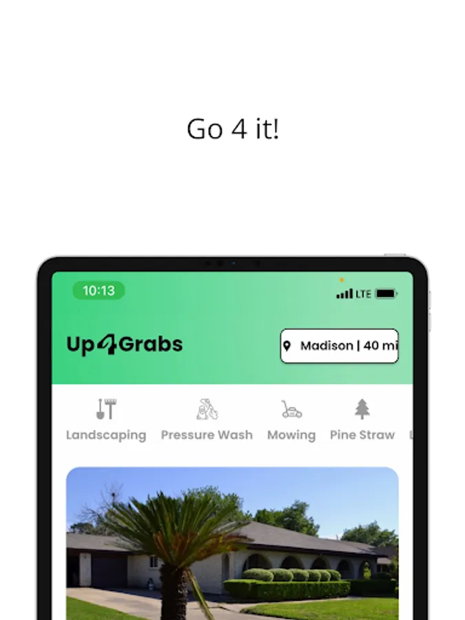 Up4Grabs is the first free, immediate, job grabbing app designed to connect homeowners with skilled day laborers. Whether you're a homeowner in need of a quick outdoor job or a handyman looking for additional work, Up4Grabs is the ideal platform for you. With a wide range of services including landscaping, mowing, pressure washing, car detailing, gutter cleaning, and more, Up4Grabs ensures that all your needs are met.