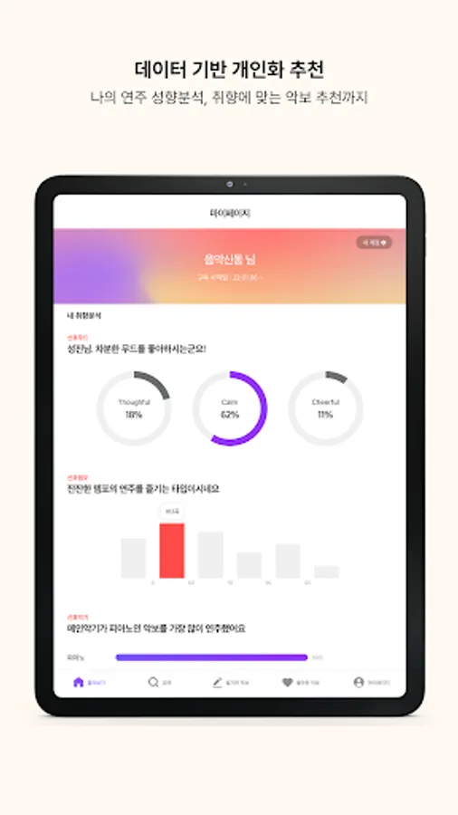 Through the smart algorithm function, it provides my performance tendency analysis, my preference mood, and preference tempo, and is very suitable for use in the educational field through convenience functions such as instrument performance, music playback, and handwriting storage.