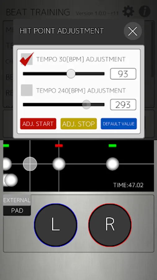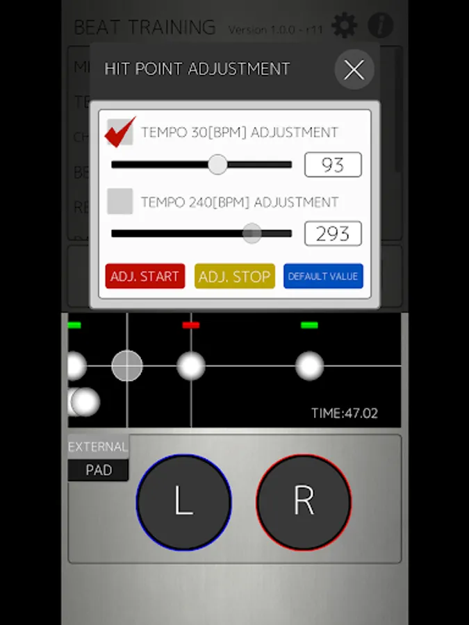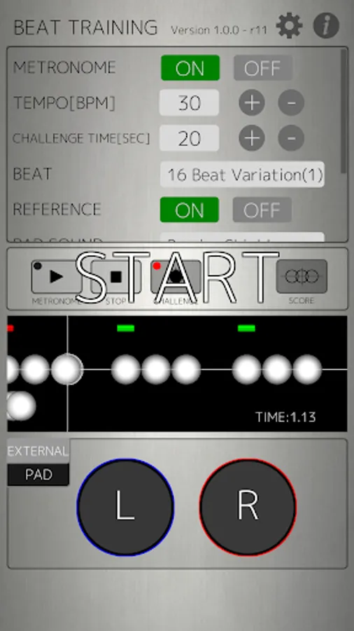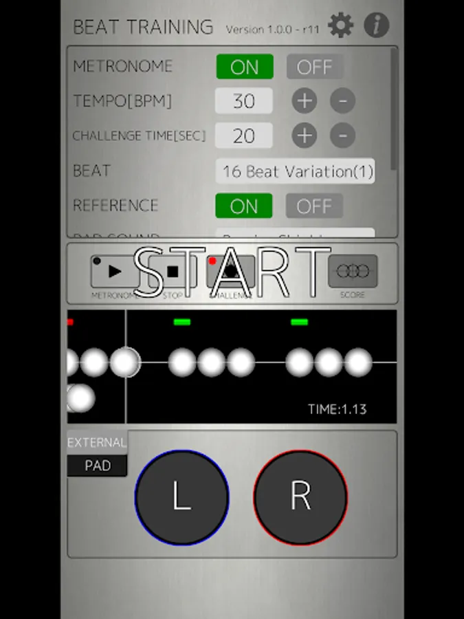 Tap the two pad buttons (L and R) at the bottom of the screen to enter the beat.