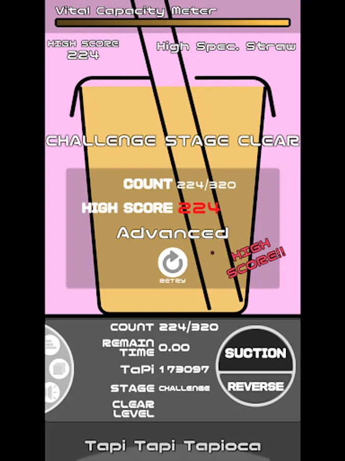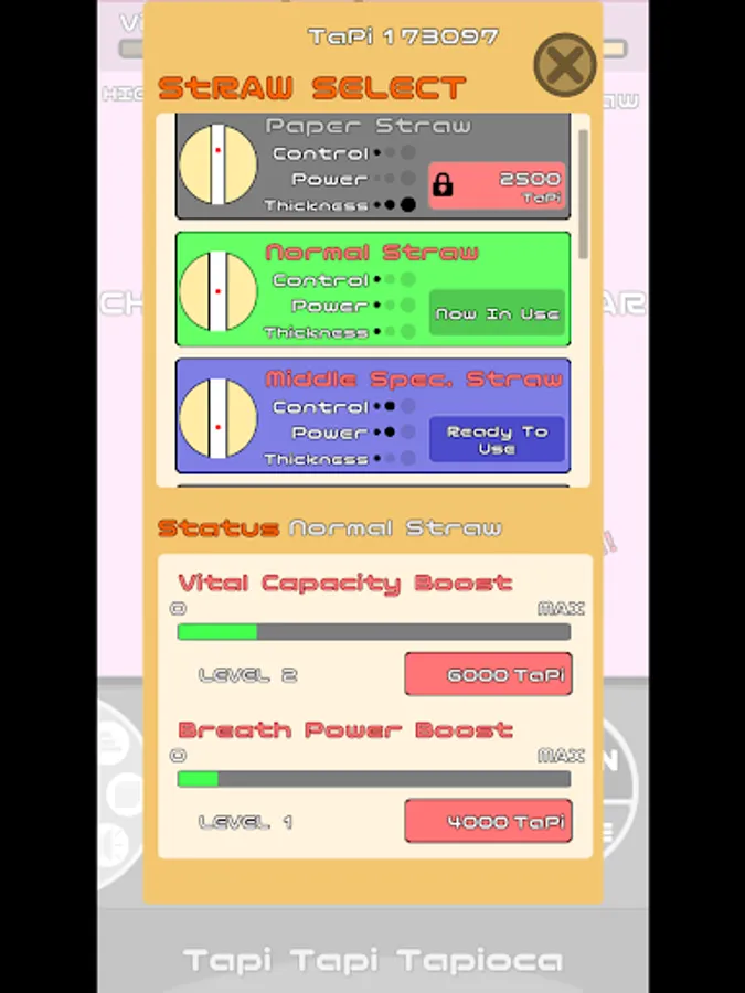 With TaPi, you can purchase straws, power up straws, unlock new stages, and continue while energy charging.