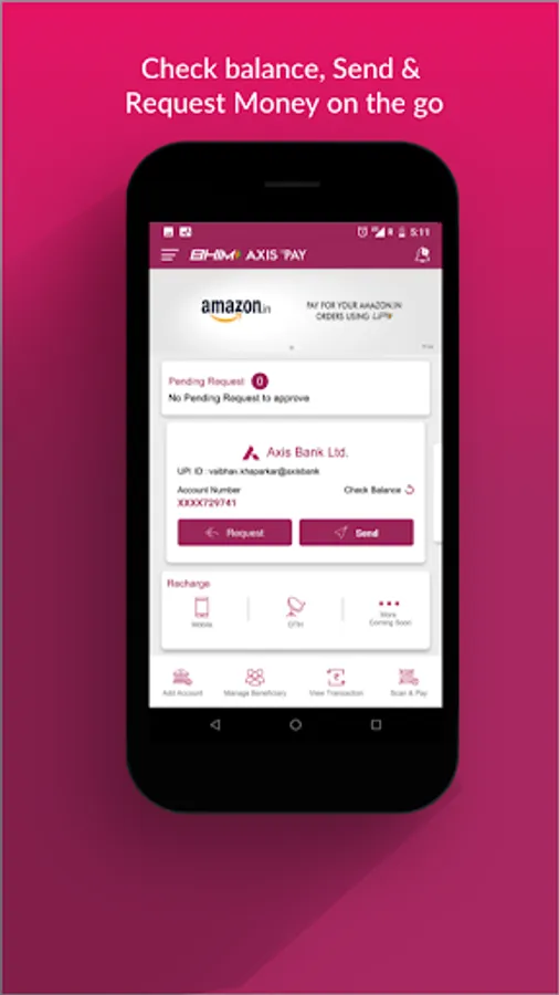 • Download BHIM Axis Pay UPI app and experience the easy way to make money transfers, mobile recharge online and DTH online recharge!