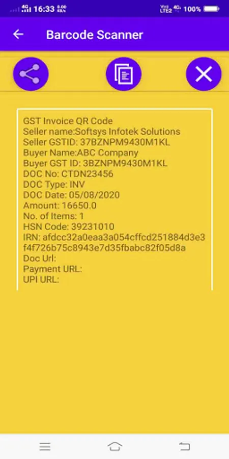 Share QR Codes or Barcode details through SMS, Whatsapp, email, twitter, facebook or any other sharing app.