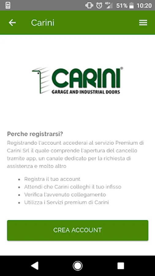 The app to stay updated with the latest news and offers of Carini Garage doors. Also registering an account you will have the premium services like dedicated channel for requests for assistance and the ability to open your garage door and your gate directly with your smartphone.