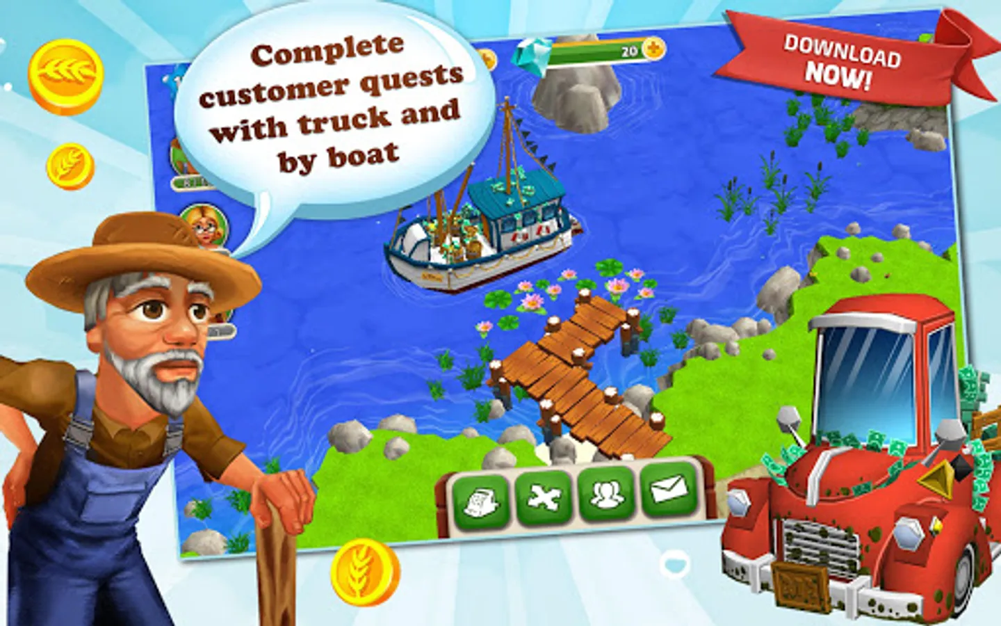 Let the farm game fun begin! Download My Free Farm 2 for your device and get your own mobile farm now. Come check out the fantastic farm game. Tend to your fields, expand your farm, care for cuddly critters, and make your farm prosper!
