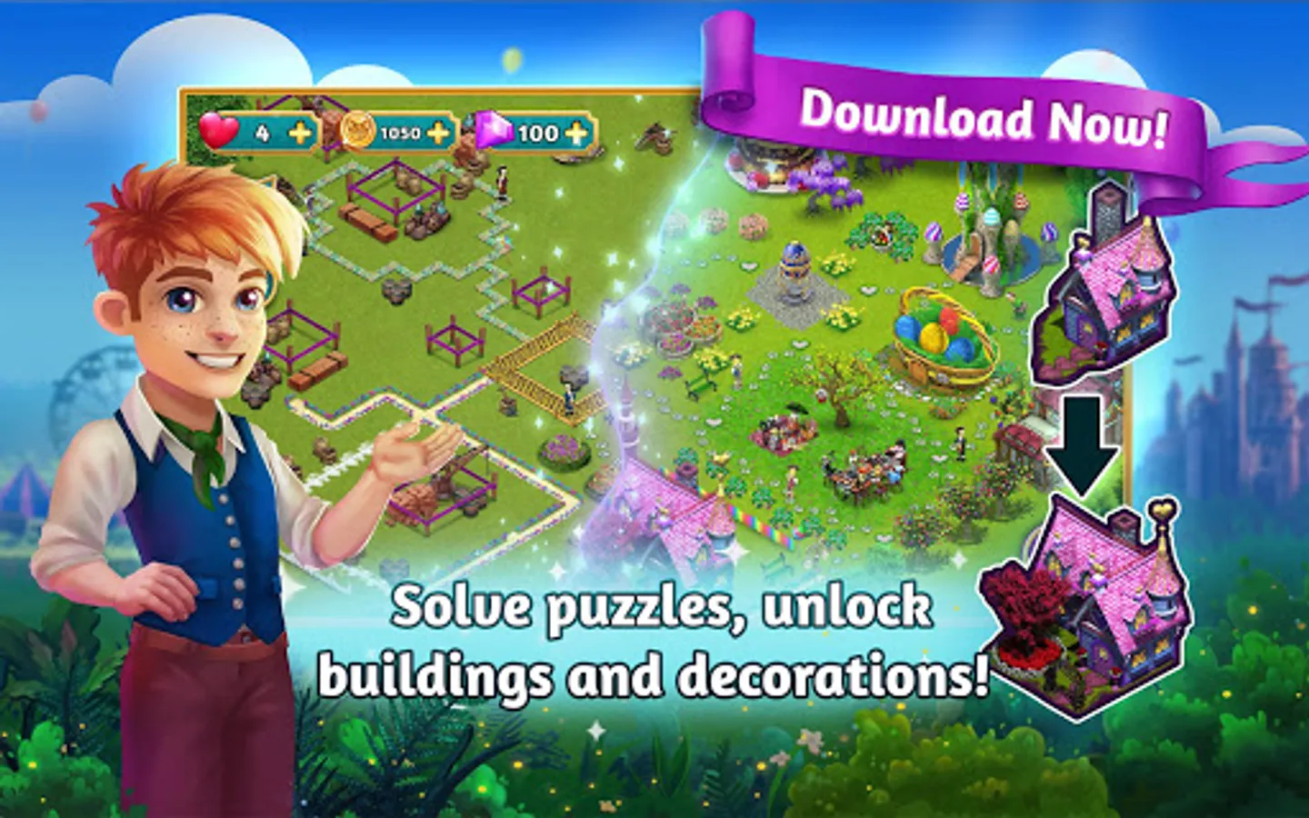 Fill your park with life. A wide range of decorations and buildings, funny challenges and many exciting solitaire card games await you.