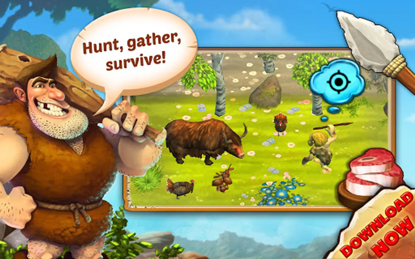 Craft hunting weapons such as wooden spears and hunt down rabbits and deer to ensure the survival of your clan. Stonies is a one-of-a-kind life simulation for your smartphone or tablet. An amazing tycoon game awaits you. Complete exciting missions with your tribe. Dive into the prehistoric times and explore the rugged wilderness with your cavemen. Teach them countless skills, such as working leather and wood, and expand your tribe’s primeval power in this Stone Age game.