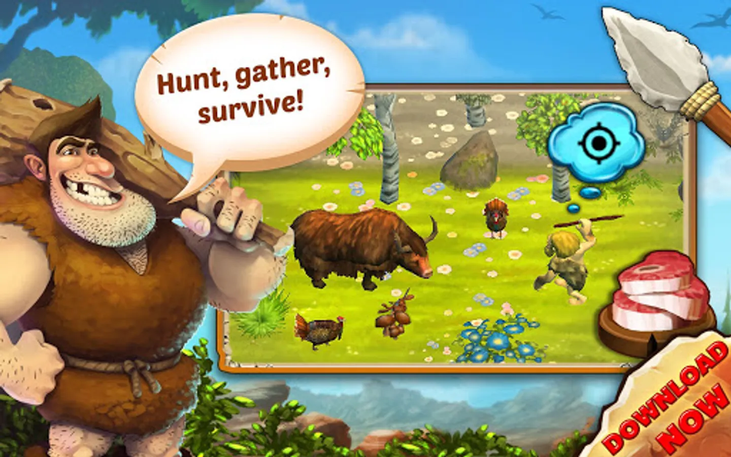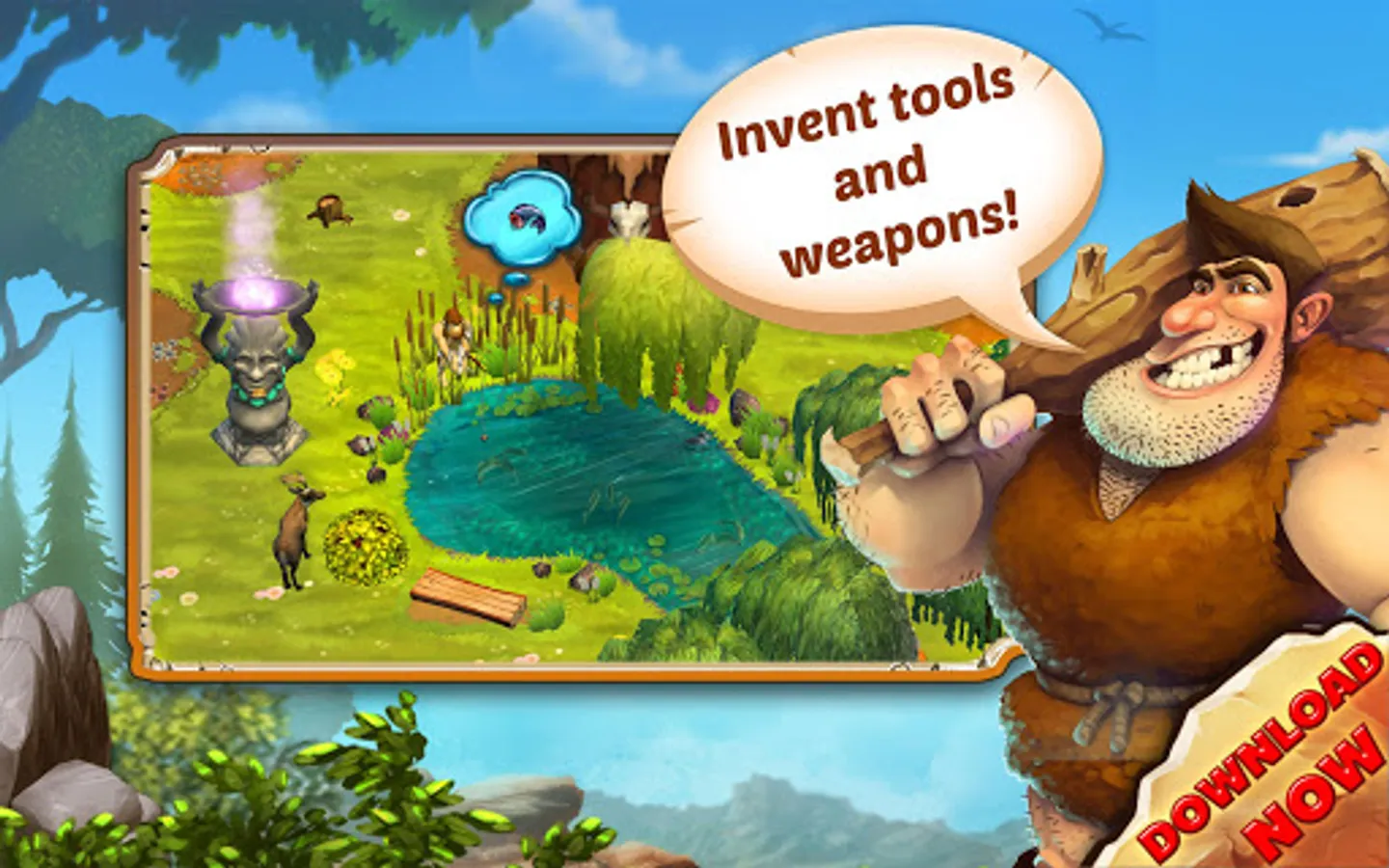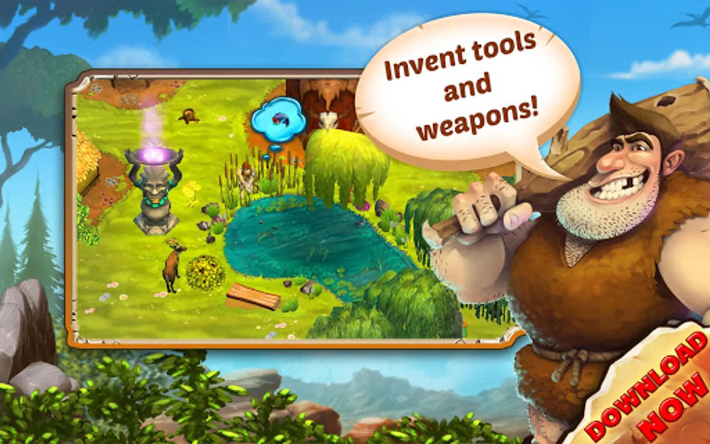 • Experience a graphically unique Stone Age game with many original animations