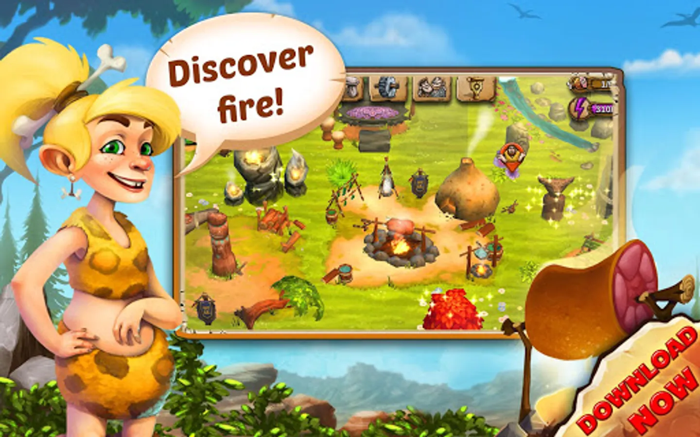 Play the gripping mix of life simulation and tycoon game now and accompany your Stonies through their prehistoric life. Prove your skill as a Stone Age leader in Stonies. All you need is a mobile device and a stable internet connection! Let’s go!