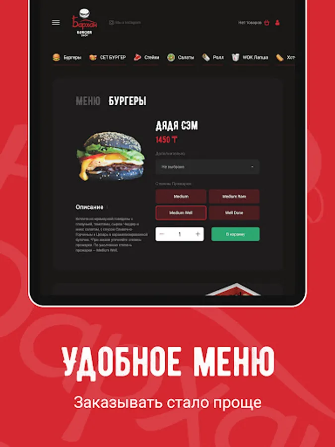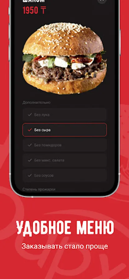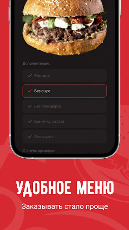 We cook all our dishes on the grill, without oil, so they retain their useful properties. For adherents of proper nutrition, there is a PP Menu section and we will also take into account all your wishes and prepare any Burger without a bun, in Iceberg lettuce leaves!