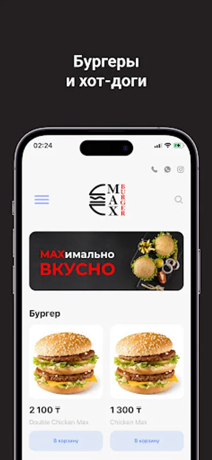 "MaxBurger" is the perfect app for those who appreciate the taste and quality of fast food. Our establishment specializes in burgers, hot dogs and coffee, combining unsurpassed taste and the convenience of online ordering.