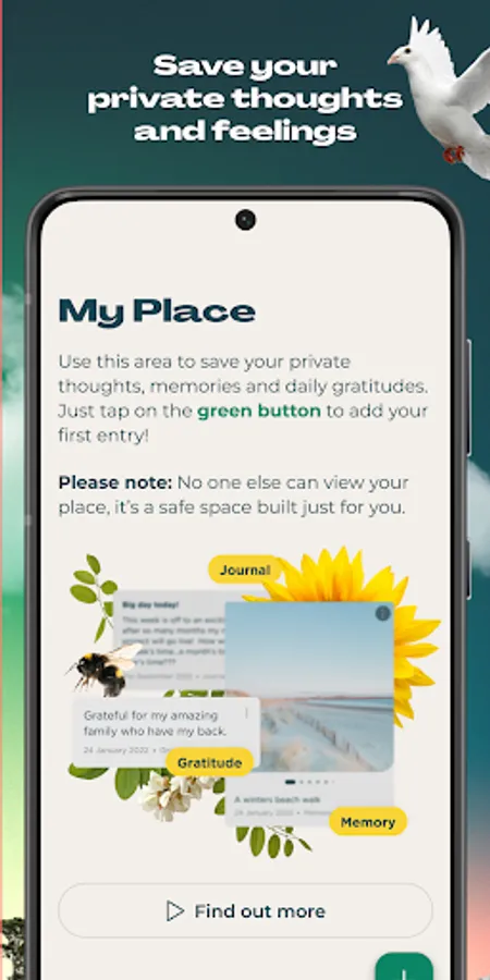 • ‘My Place’: a private safe space to enter your intentions, daily gratitudes, memories and manifestations
