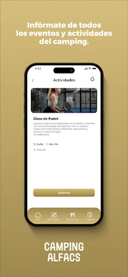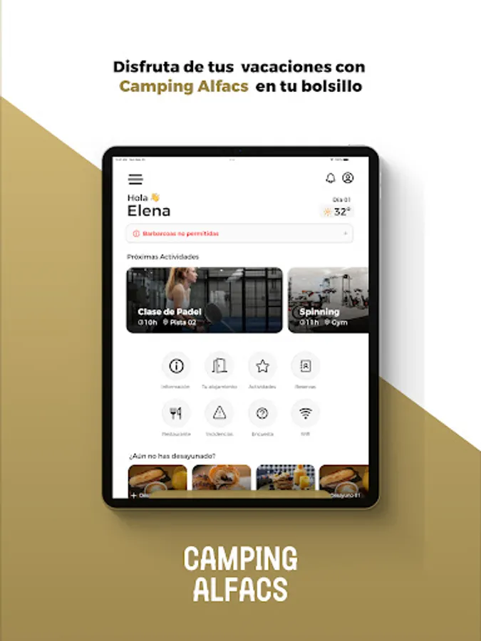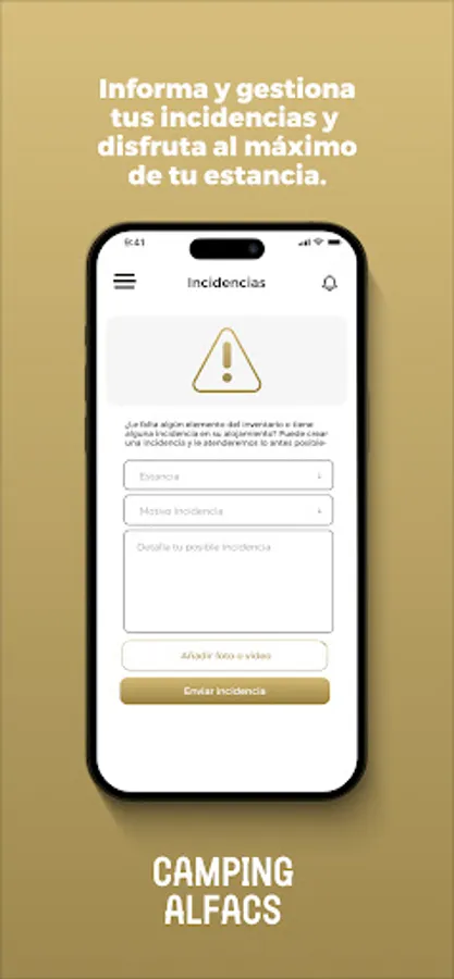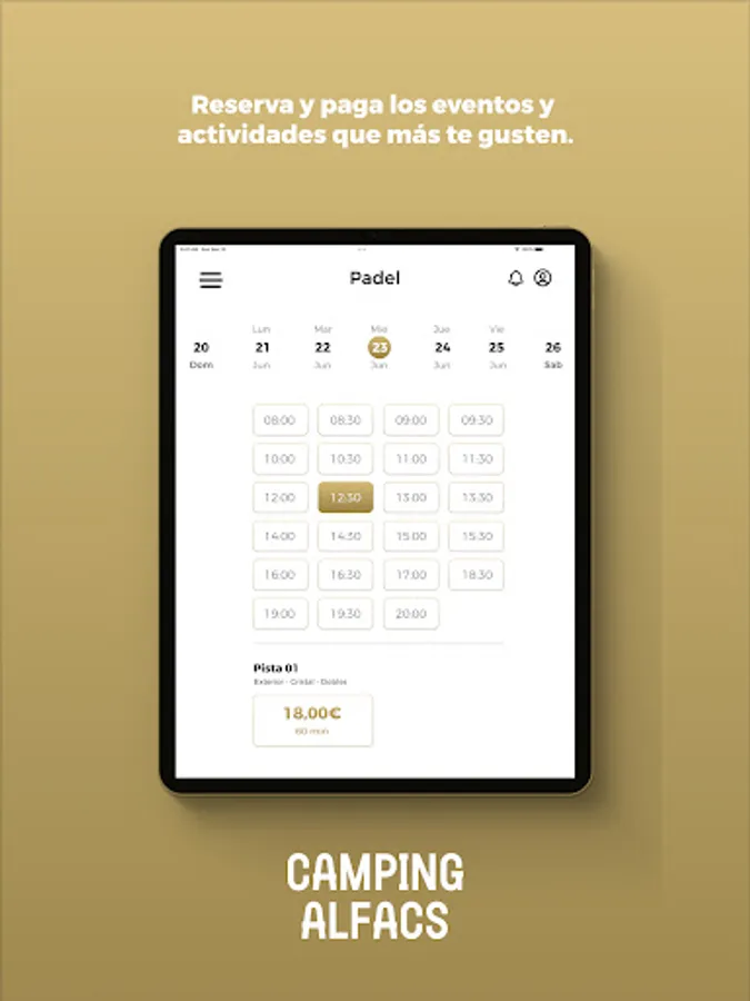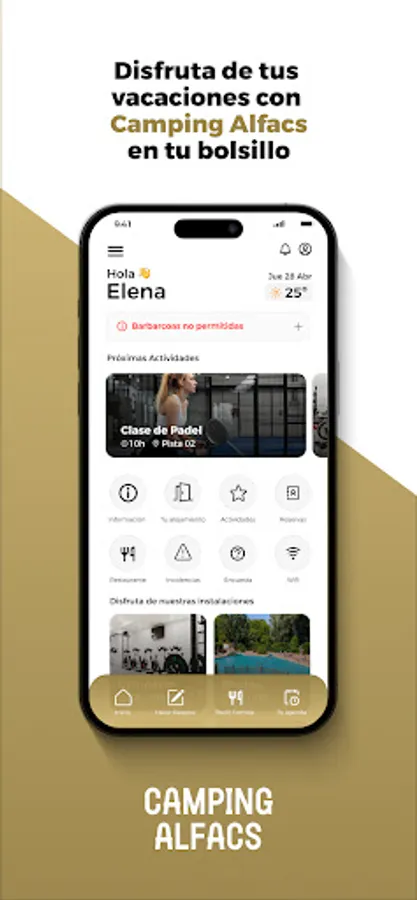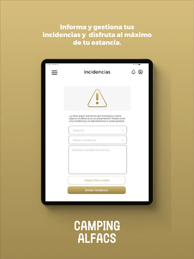 With our App you will have camping in your pocket. After registering your stay and choosing your language, you will gain access to all the resort's activities, services and products from a single site, through which you can easily make reservations and payments. In addition, you can request maintenance work, notify incidents and assess those services or activities in which you have participated. To live the complete camping experience, download our App!