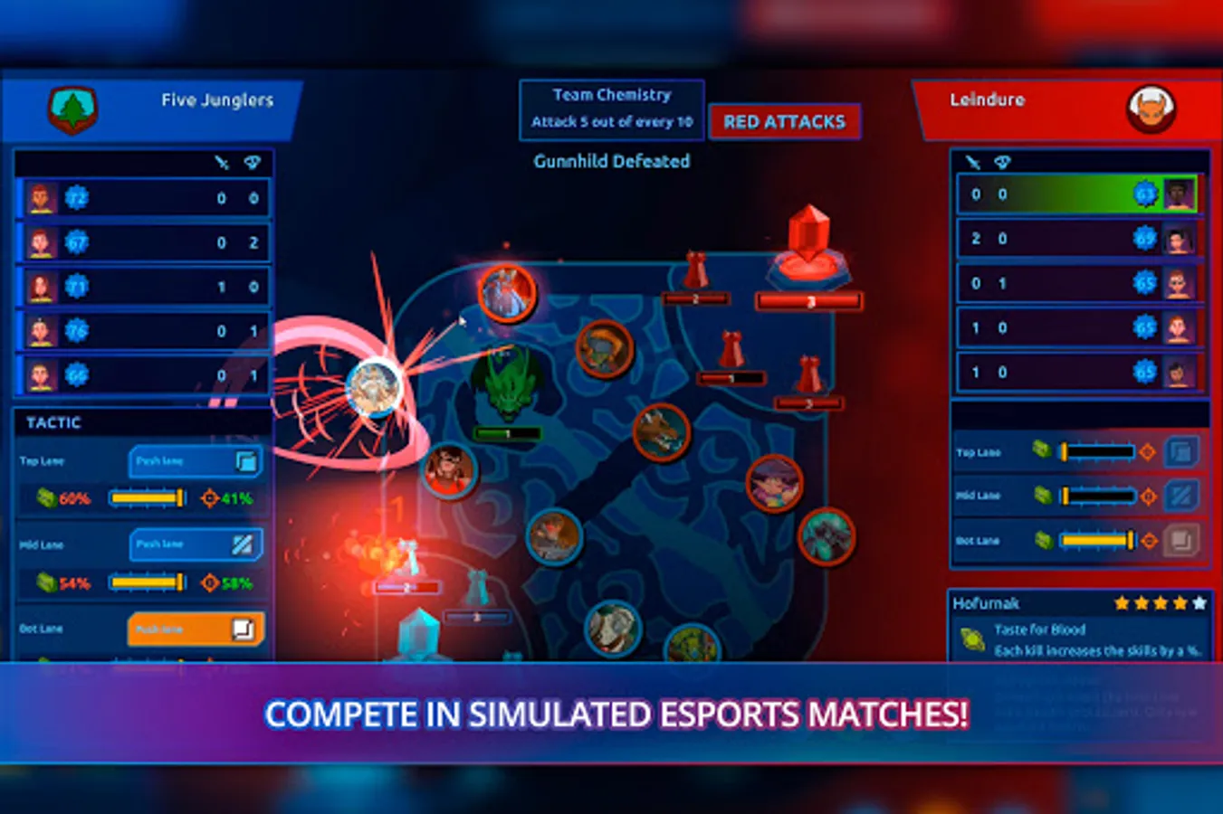 Train your own arena MOBA players and compete against professional esports teams