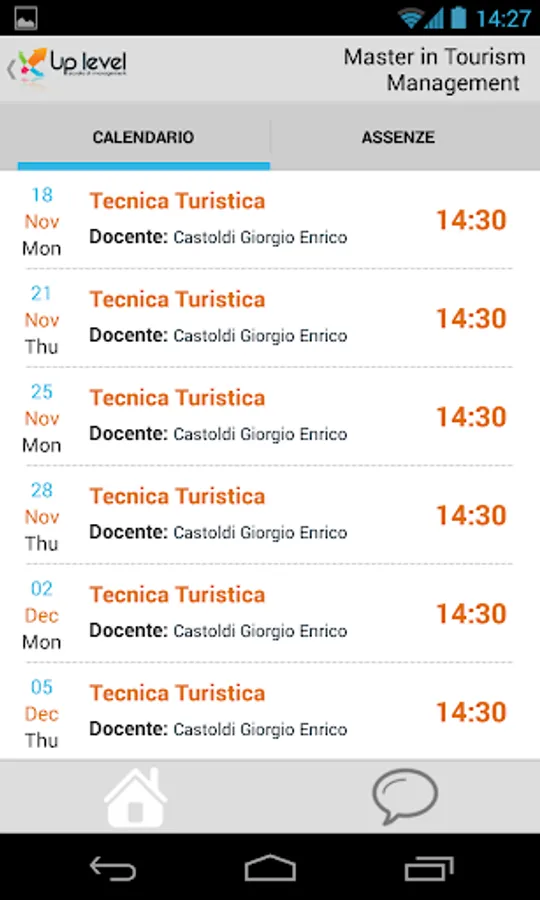 In order to respond more effectively to the needs of its students and expand the range of services offered the School of Management has decided to support the traditional view also of the App Up Level creating an online environment dedicated to the consultation of the teaching calendar, the absence management and communications with teachers.