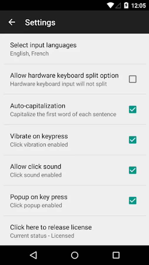• Licensing: Available as full functional free demo version in Google Play (...). YKey keyboard also supports business-licensing option (Contact: service@uplicali.com for more information).