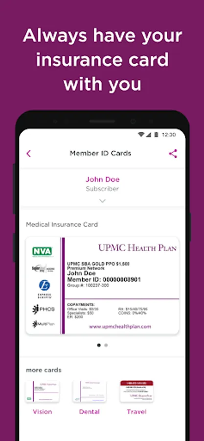 - View member ID cards for you and your family, and email them to your provider directly from the app.