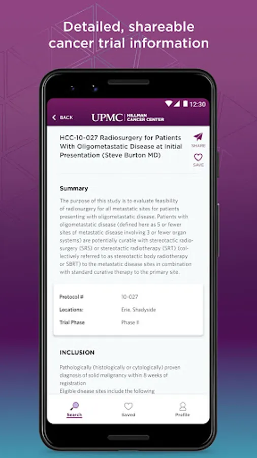 The UPMC Hillman Cancer Trials Finder app helps clinicians, patients, and their families: