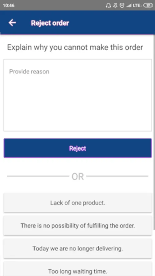 - Rejecting orders