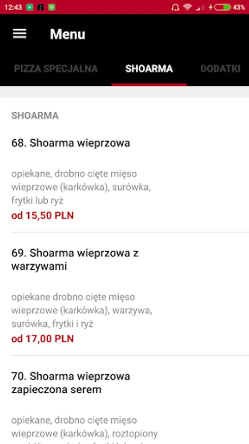 - current menu and promotions