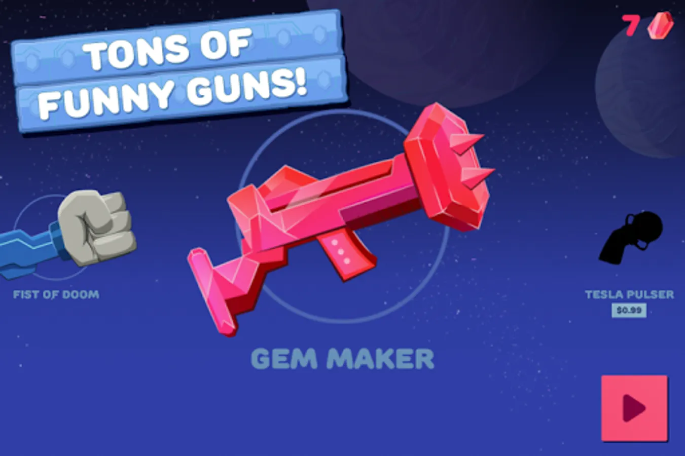 Collect gems on your path, build your gun inventory and shoot your way to survival, A.K.A your highest score (let’s face it, you’re going to die).