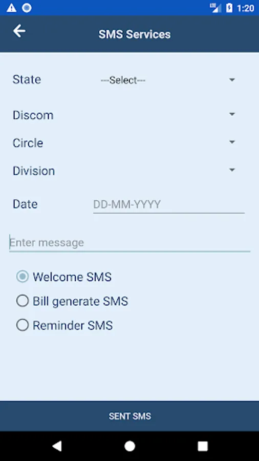 This application for view report and send sms to new connection in uppcl.admin can login through registered mobile no and password then admin can sen sms and view report on the basis of state,dis-com,circle,division and date.