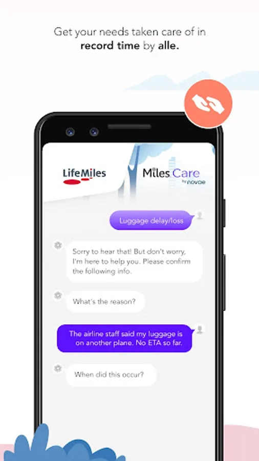 alle, our Hum/Bot, will be always on, always ready to assist you to resolve your issues in real time and process instant compensations and disbursements to your Miles Care Visa Digital Card or LifeMiles account.