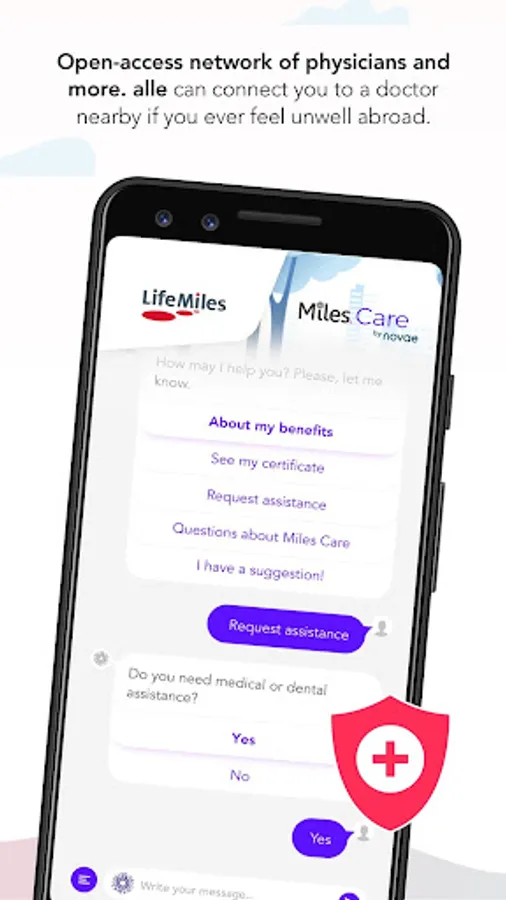 Wherever you go, Miles Care has your back. You just need your LifesMiles | Miles Care app on your smartphone, and if something happens you’ll get immediate access to world-class coverage and benefits, all included in your subscription.