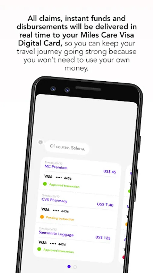 alle, our smart agent, will be always on, always ready to assist you to resolve your issues in real time and process instant compensations and disbursements to your Miles Care Visa Digital Card.