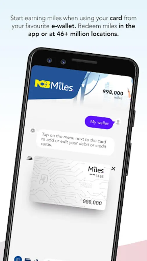 Start earning miles when using your card from your favourite e-wallet. Redeem miles in the app or at 46+ million locations.