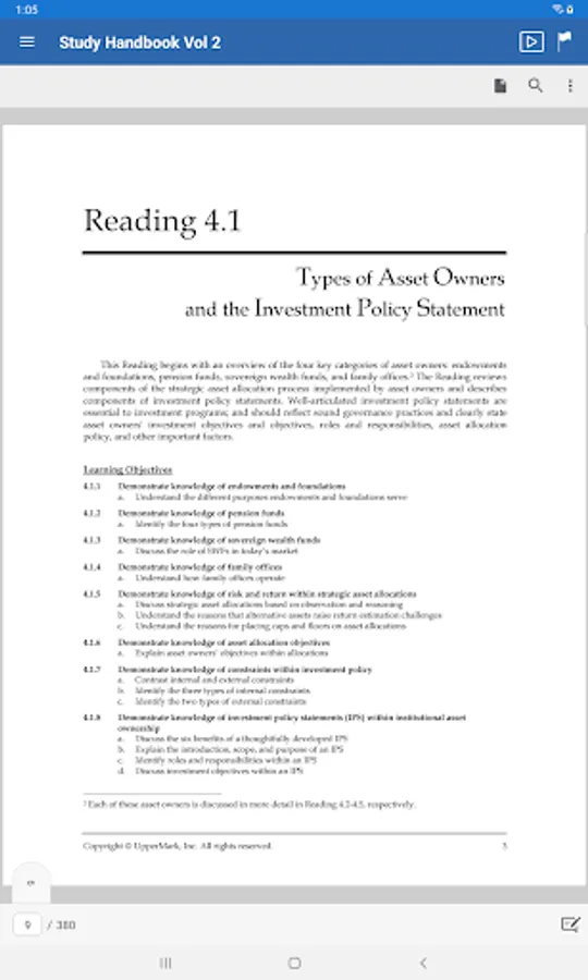 UpperMark e-Reader is for accessing the UpperMark e-Study Handbooks, course lecture notes, and associated documents for preparing for the CAIA exams.