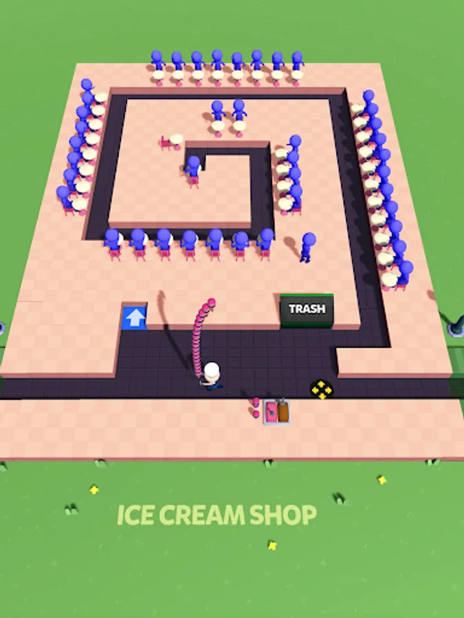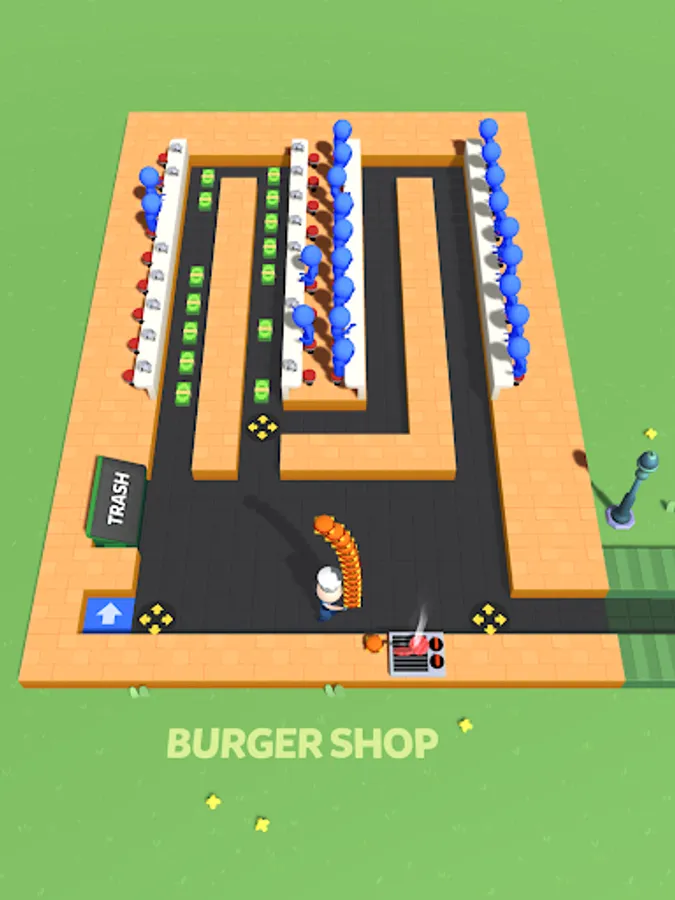 Swipe to directions in the maze-like restaurant, expand the labyrinth, unlock corridors, and add more serving points.