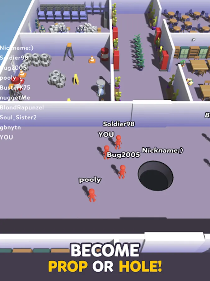 In this thrilling mobile game, you and your friends will take turns transforming into props or holes, challenging each other to find or hide from opponents. With each round, the gameplay changes, ensuring endless excitement and surprises.